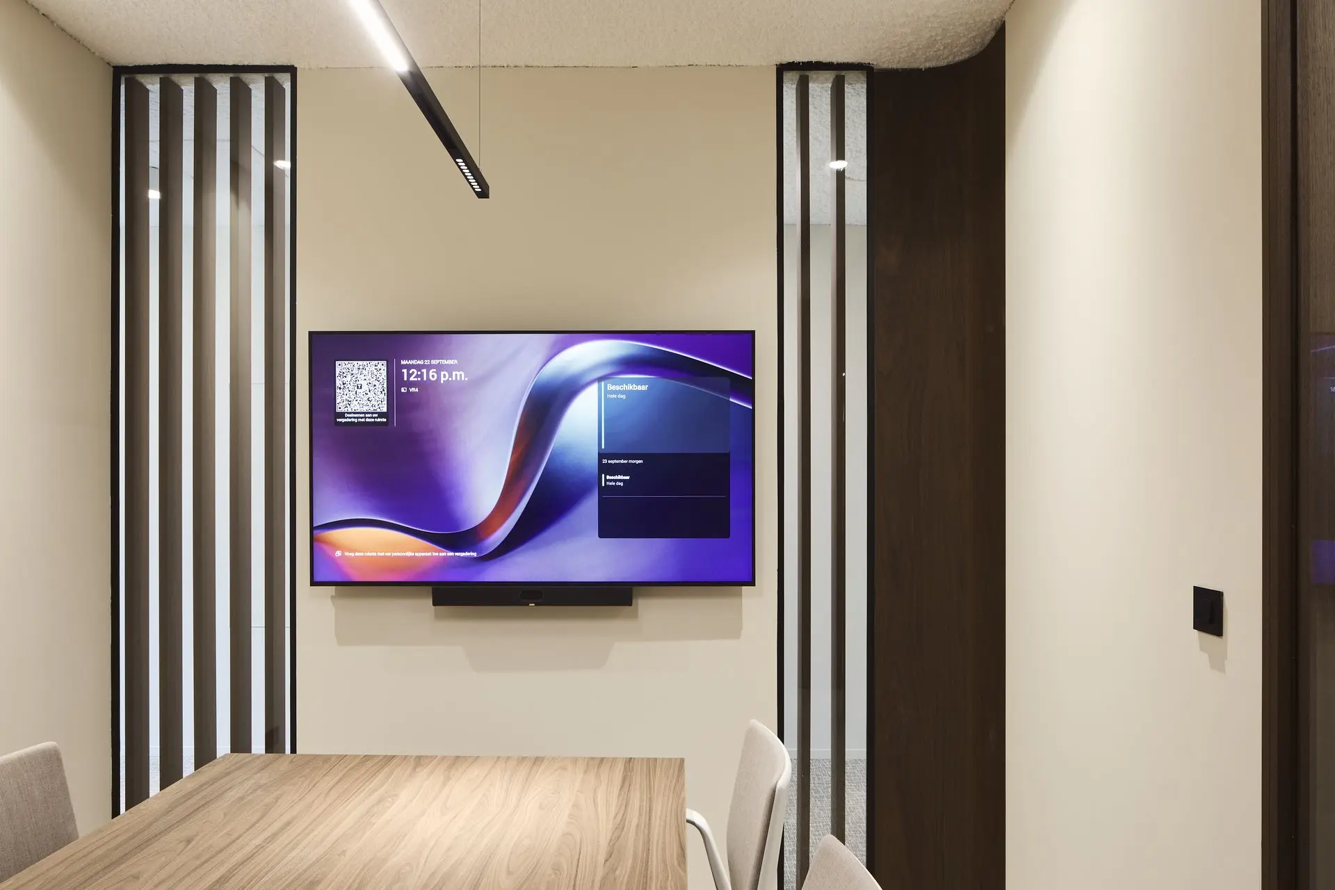 Een lichtrijke ruimte die energie en vernieuwing uitstraalt. Nova is de perfecte keuze voor overlegmomenten of presentaties met uw team.